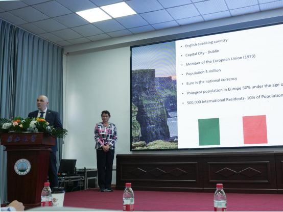 座谈会后,Maria Kyne和Sean Lyons在15教国际学术报告厅进行学术讲座,他们以“Engineering and Construction in Ireland”为题,重点介绍了行业发展动态及趋势,学生反响热烈。讲座结束后,学生代表与来访教师合影留念。