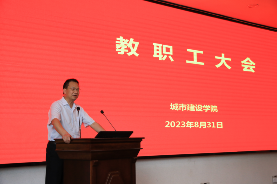 学院党委副书记周洁如以“奔跑向未来,携手争荣光”为主题,围绕学生工作成绩、先进典型、开学返校迎新、学风建设、第二课堂活动、创新创业等工作做出总结规划。