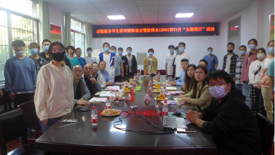 9教208会议室,同他联系的给排水12001班全体学生座谈,畅谈学习党的二十大精神体会,并就后勤服务工作听取了同学们的意见。后勤保障部党务办公室、学生宿舍服务中心、饮食服务中心负责人,以及18av