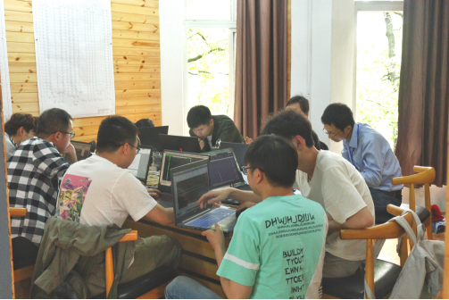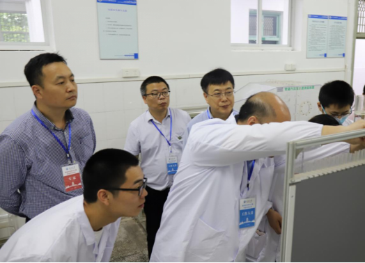 专家和同学们在一起,了解学生开展实验和毕业设计完成情况