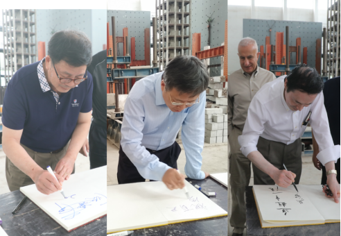 土木工程实验教学中心和土木工程防灾减灾中心,并欣然为学院师生题词。