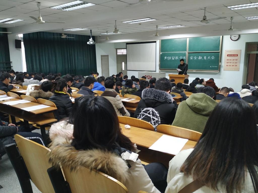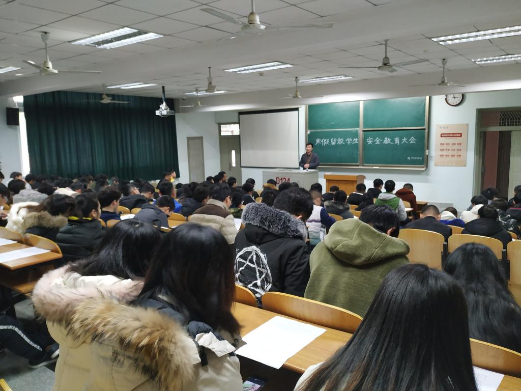 寒假留校学生安全教育大会在13教D124召开,学院党委副书记周俊,学工办主任颜学俊,团委书记盖东芳,辅导员周喆、刘熠、谢炜、李敏锐和全体寒假留校学生参加会议,会议由颜学俊老师主持。