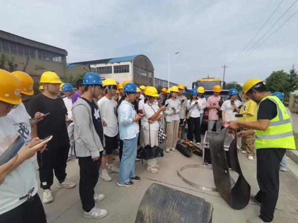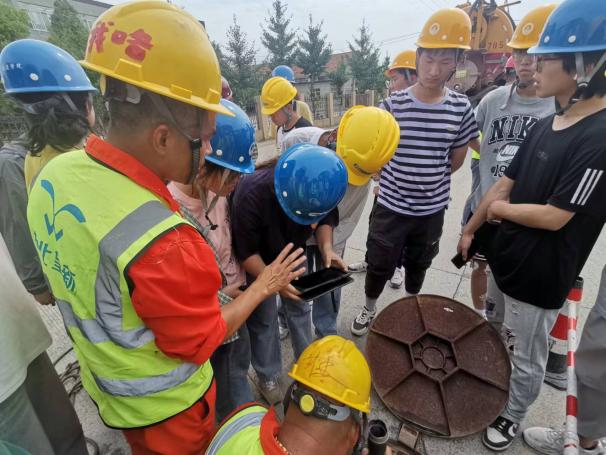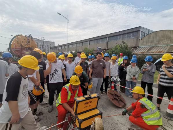 随后,全体师生观看了现场施工作业人员对相关管道修复技术环节的操作展示,并与施工人员亲切互动交流。部分兴趣浓烈的同学在专业技术人员的指导下,对QV潜望镜进行了实操体验,对管道修复相关设备有了更加直观、深刻的认识。