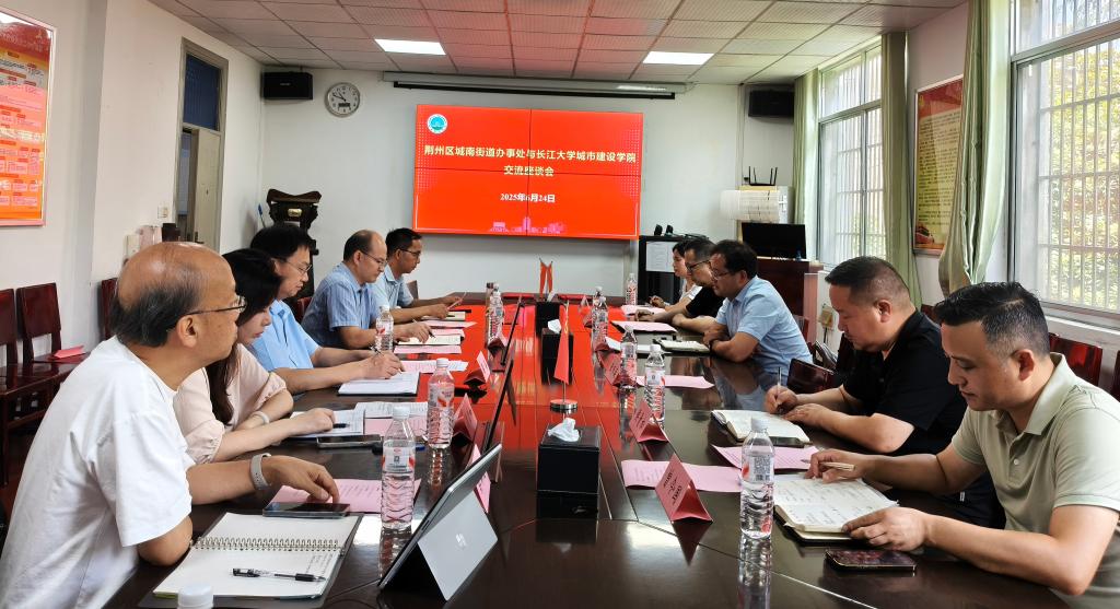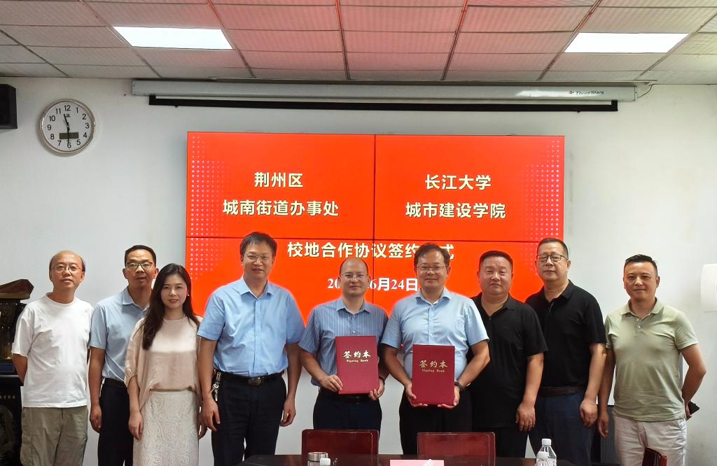 与荆州区城南街道办事处校地合作签约仪式在9教208会议室举行。学院领导班子成员、学校建设指挥部总建筑师郑辑宏;城南街道办事处主任张书庭、人大主任邓鹏飞、荆州市大学城发展服务中心主任周江、新风社区党委书记侯青松及相关部门负责人参加。会议由院党委书记谌姿主持。