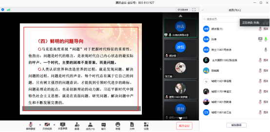 授课过程中,孙书记以中国共产党领导下的新冠肺炎疫情防控工作为例,深刻地分析了中国共产党的优势与特色,加深了同学们对习近平新时代中国特色社会主义思想的认识。