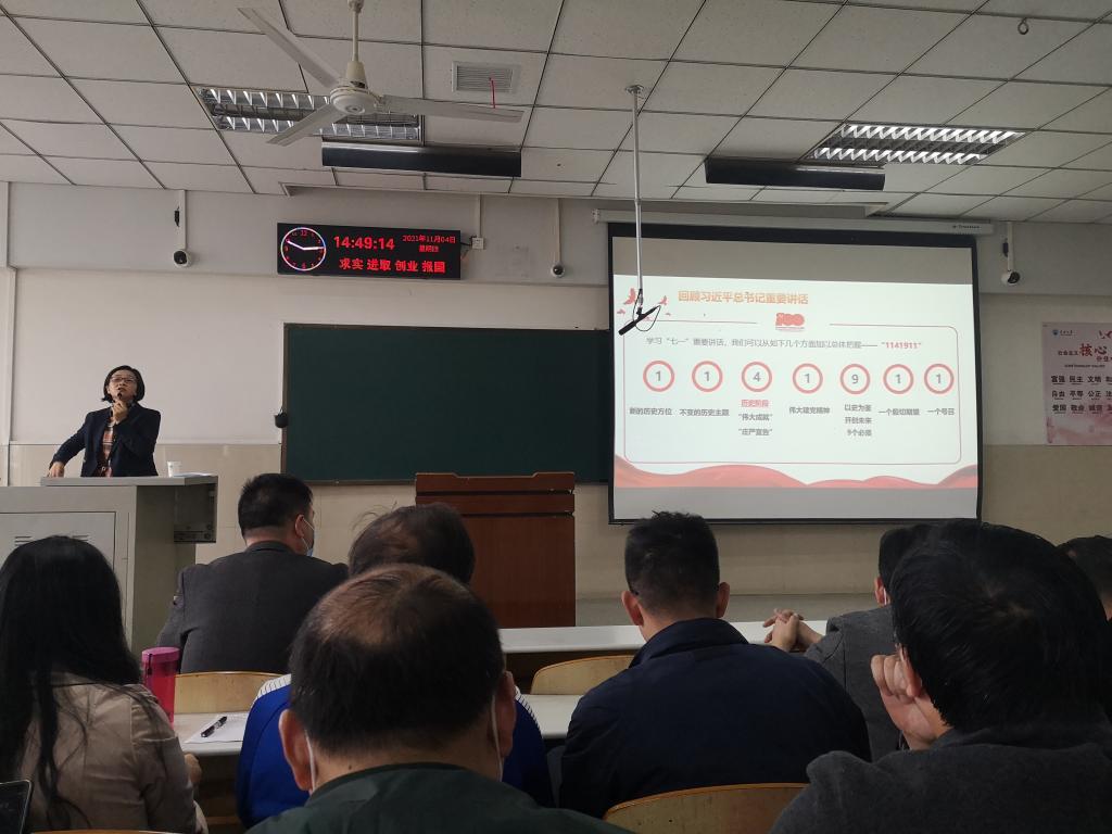 党委邀请马克思主义学院刘小燕书记,为学院全体教职员及学生党员共241人开展学习贯彻习近平总书记“七一”重要讲话精神主题宣讲,全面、准确、深入解读习近平总书记“七一”重要讲话的重大意义、主要内容和丰富内涵。