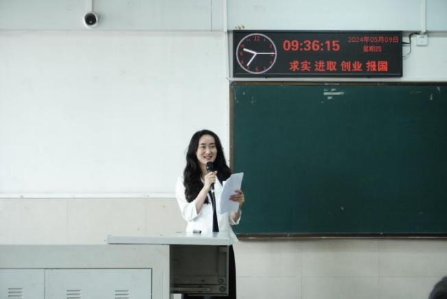 分团委书记盖东芳老师向同学们介绍本次活动,希望同学们通过这次学术沙龙活动中能互相交流,碰撞思维火花。