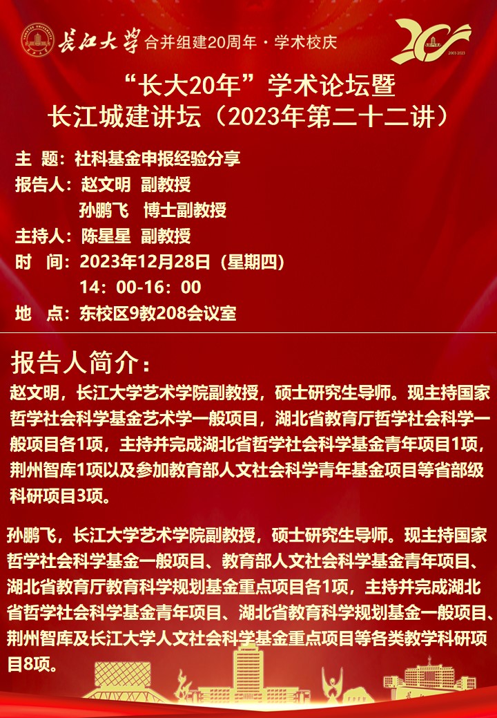 “长大20年”学术论坛暨 长江城建讲坛(2023年第二十二讲):社科基金申报经验分享