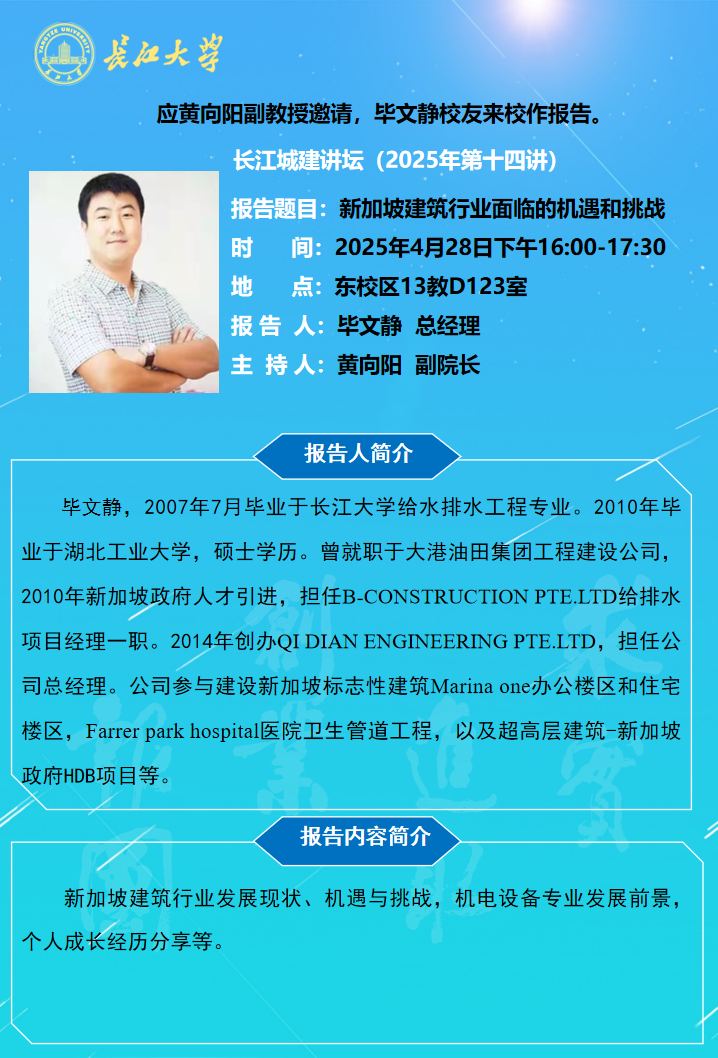 发布人:城建教学科研办 发布时间:2025-04-27 点击: