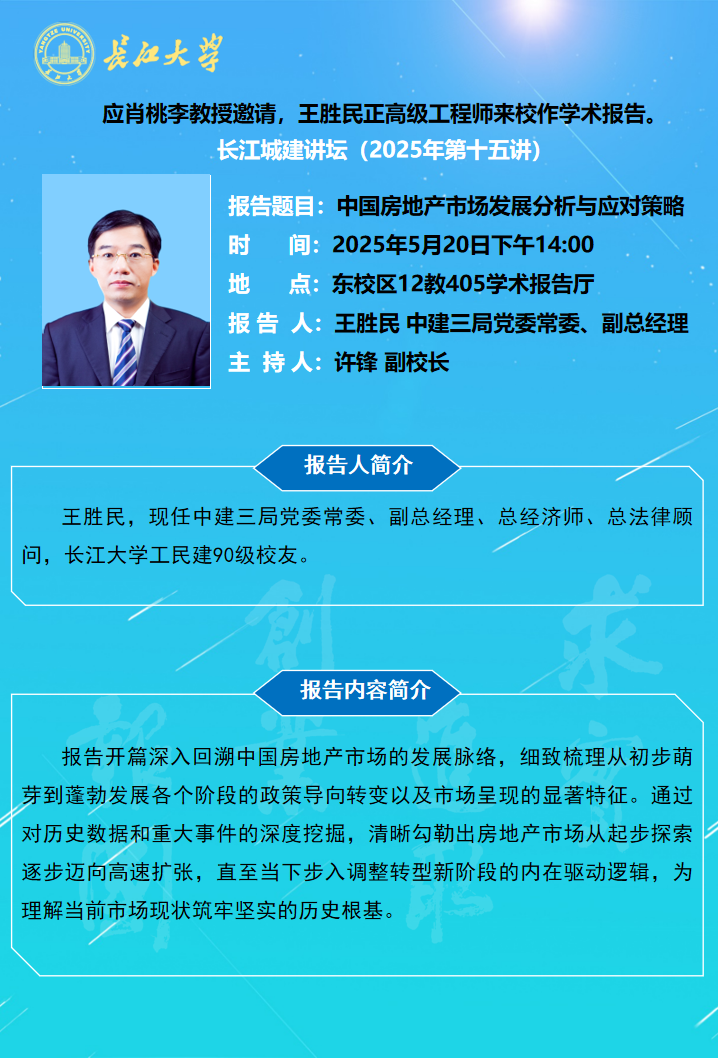 长江城建讲坛2025年第十五讲:中国房地产市场发展分析与应对策略