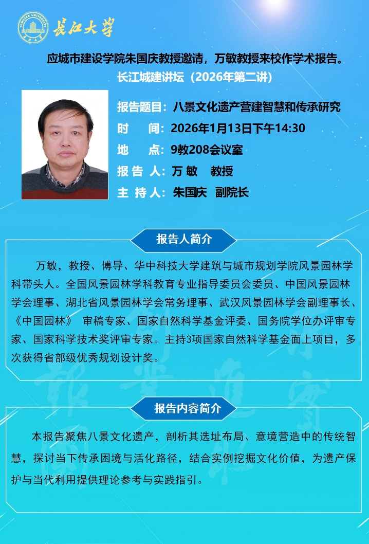 长江城建讲坛2026年第二讲:八景文化遗产营建智慧和传承研究