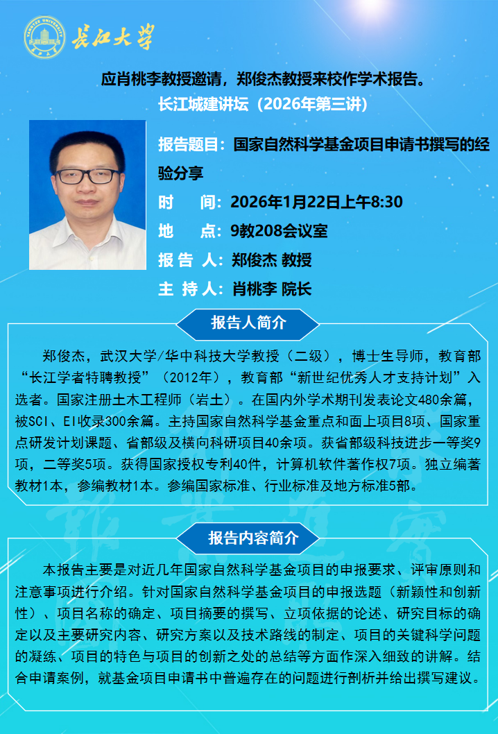 长江城建讲坛2026年第三讲:国家自然科学基金项目申请书撰写的经验分享