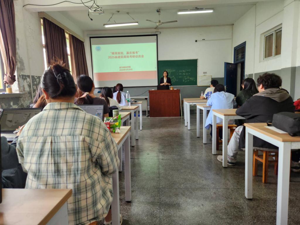于2024年4月29日举办“精准规划,赢在报考”2025届建筑规划考研动员会。此次动员会是学院落实学风建设,提升人才培养质量的重要举措,为学院学子提供了备战考研的指导与支持,引导他们正确认识考研,弘扬积极向上价值观,以乐观的心态积极备考,为未来的学业发展奠定基础。