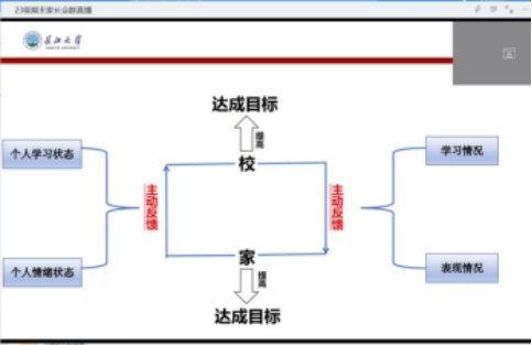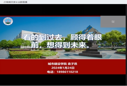 召开2023级线上期末家长会,院党委副书记周洁如、党建秘书胡冰恒、2023级全体学生及家长参加本次会议,会议由2023级辅导员袁子昂主持。