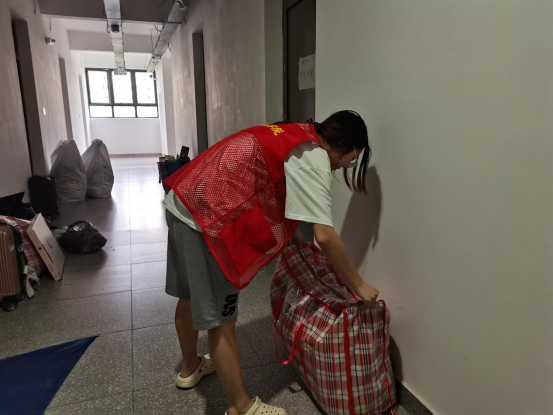 在22栋男生宿舍楼大厅、24栋女生宿舍楼大厅学生社区党员服务站前,志愿者们轮流值班为毕业生看顾、搬运行李,清扫垃圾,在炎热的夏日忙得大汗淋漓,热情却丝毫不减,爱心举动让毕业生们感到温暖。