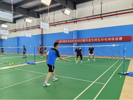 于西校区羽毛球馆,顺利开展欢送2023届毕业生师生羽毛球联谊赛。学院党政班子成员、教师代表,毕业生、在校生代表参加本次活动,并邀请到了武汉校区常务副校长孙涛出席。
