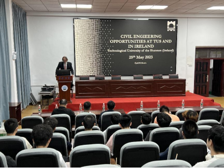 与爱尔兰香农理工大学于2014年获得教育部审批联合举办土木工程专业本科教育项目,该项目致力于建设一个学科交叉融合、专业特色鲜明、人才培养体系先进、具有优秀示范效应的国际化创新型教学体系。依托两校的优质教育资源,联合培养出具备扎实土木工程专业基础、出色创新能力与合作精神、多语言优势及国际视野的高级复合型人才。