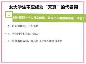 女同学们的安全防范意识、加强女生们心理健康、提高她们的辨识能力,起到了重要作用。