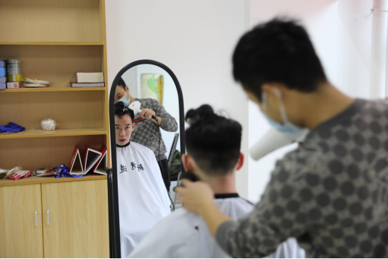 在爱心理发店现场,理发师按照学生诉求,认真细致地为学生修剪头发,希望能够尽可能满足同学们的需求。他们精湛的技术、贴心的服务,吸引了一批又一批学生前来理发。经统计,此次活动为全院150名左右的学生解决了燃眉之急,在为学生办实事的同时,也减少了疫情防控期间的人员流动。