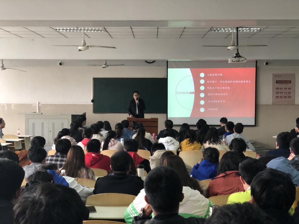 东校区举行了"5D BIM协同管理平台在建筑工程项目咨询中的应用"讲座。讲座由学院党委副书记周俊主持,工程管理16、17级学生及相关专业老师参加。