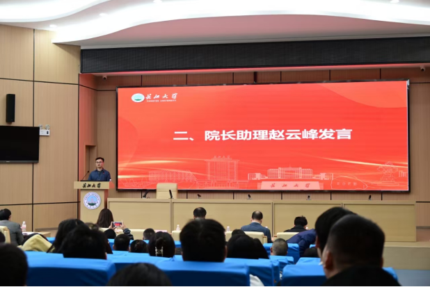 2024级研究生大会于11教报告厅顺利召开。此次会议由学院领导、硕士研究生导师、研究生教学秘书、学工办全体老师及2024级98位全体研究生共同参加与见证。本次会议由院党委副书记周洁如主持,见面会在庄严而热烈的氛围中拉开帷幕。