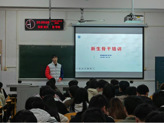 在2教208教室开展了新生骨干培训。本次培训由新生辅导员袁子昂担任主讲人。