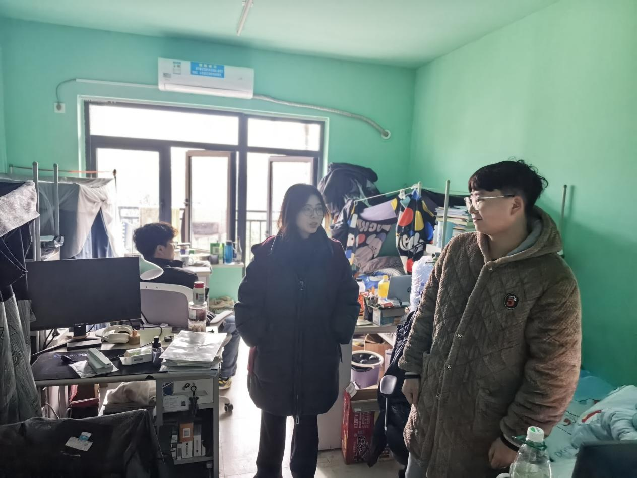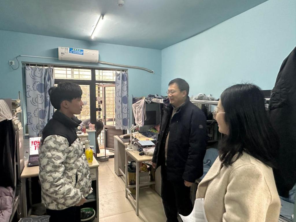 走访期间,学院领导细致询问学生们返校途中的经历,了解大家返校后的生活感受以及新学期的学习规划,同时提醒同学们要尽快调整状态,全身心投入到学习和生活中,还特别叮嘱同学们关注天气变化,做好防寒保暖措施 。