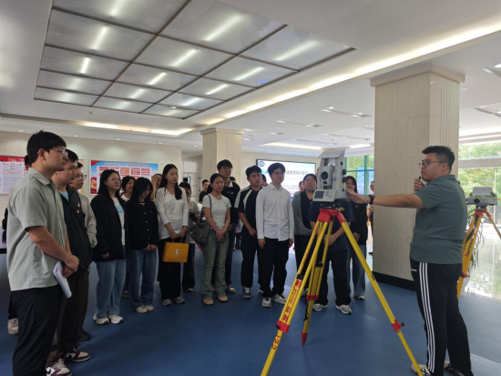 活动伊始,学院师生首先聚焦技术中心一楼大厅的先进测量设备展示区。无人船、无人机、激光雷达、GNSS测量系统等行业前沿设备整齐陈列,专业技术人员围绕设备性能参数、测量精度标准、实际操作流程等核心内容细致讲解。