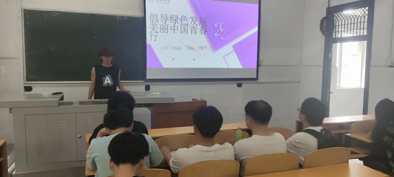 会上,各团支部学习习近平总书记关于社会主义生态文明建设的重要论述及开展世界环境日主题实践活动,明确习近平生态文明思想是习近平新时代中国特色社会主义思想的重要组成部分,为新时代推进生态文明建设提供了方向指引和思想武器。各团支部引导青年学子树立和践行绿水青山就是金山银山的理念,动员大家积极投身建设美丽中国、实现人与自然和谐共生的现代化的伟大实践。各团支部从垃圾分类、勤俭节约、绿色出行、无废校园、限塑减塑、光盘行动等方面开展主题实践活动,引导青年学生积极成为环境保护的志愿者、实践者和环保行动的宣传者和推动者。