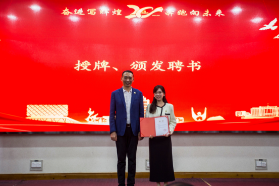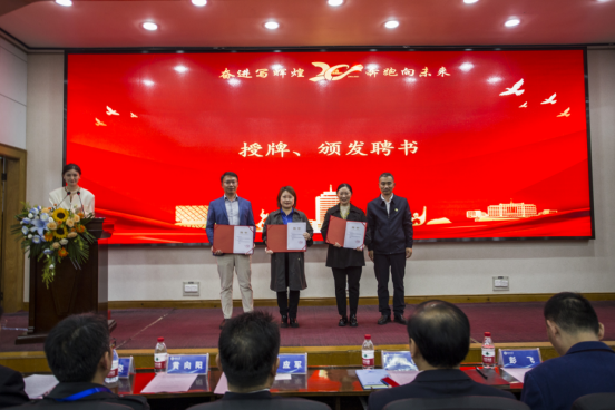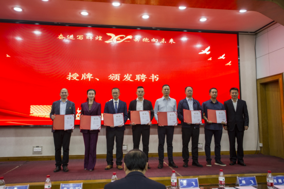 彭飞宣读了18av 校友会成立文件,并主持了揭牌仪式和颁发聘书环节。学院校友会首任会长谌姿,副会长肖桃李、眭立、卢卫东、邢超、贺翔、邹鹏程、李雄飞,秘书长周洁如,副秘书长李先华、周莉、靳方倩上台接受聘书。