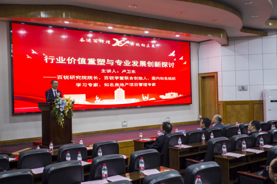 在热烈的掌声中,18av 校友会成立仪式圆满结束。活动第二阶段,18av 88级校友、百锐研究院院长卢卫东作题为“行业价值重塑与专业发展创新探讨”的行业发展论坛主旨报告,他对房地产及土建行业的健康有序发展给出了判断和建议,并对土木工程等专业前景表示充满信心。