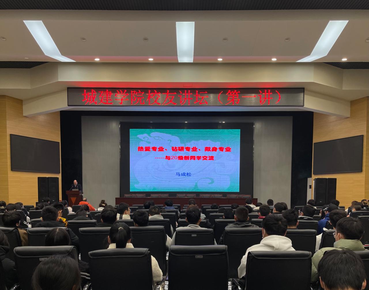 讲座中马成松教授分享了自己在数十年的学习与从教生活中的所得到的经验感悟,总结学习土木工程专业的关键“创业创新,敬业奉献”。他强调:“土木工程专业能有今天的成就离不开一代又一代土建人的创新与奋斗